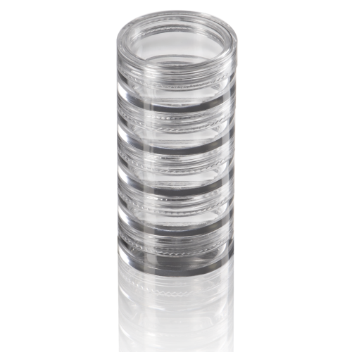 Пластиковые накручивающиеся баночки стэки с закручивающейся крышкой для перекладывания любых сыпучих, кремовых и жидких косметических текстур. Удобно докупать дополнительные стеки и накручивать в один стэк.