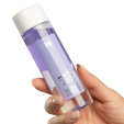 Формула объединяет водную и масляную фазы, которые при встряхивании образуют легкую эмульсию, быстро и бережно растворяющую стойкую косметику.