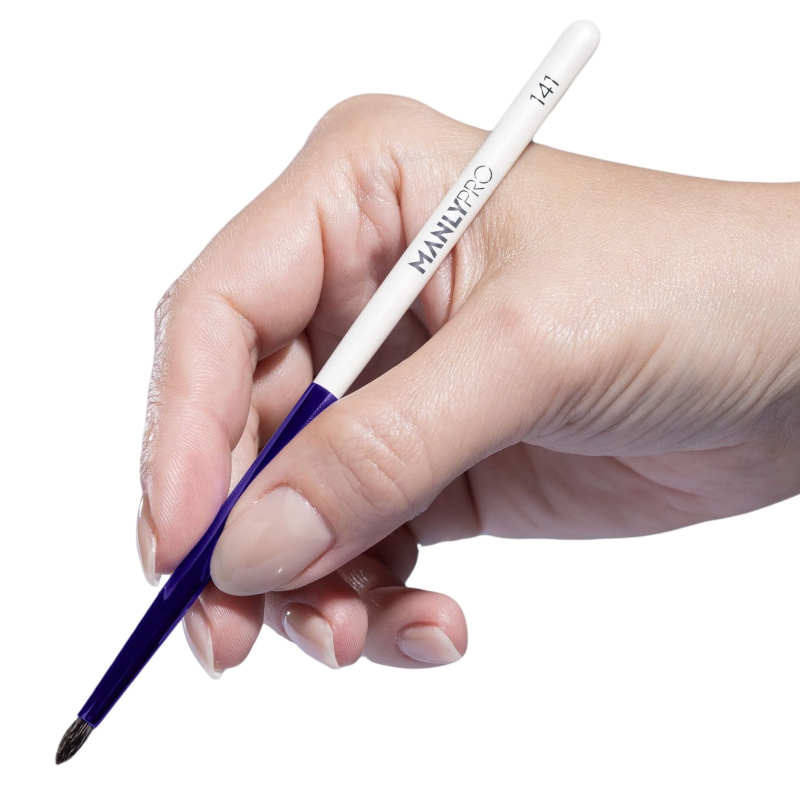Маленькая круглая кисть для растушевки теней по ресничному краю и детальной проработки акцентов из натурального ворса белки.