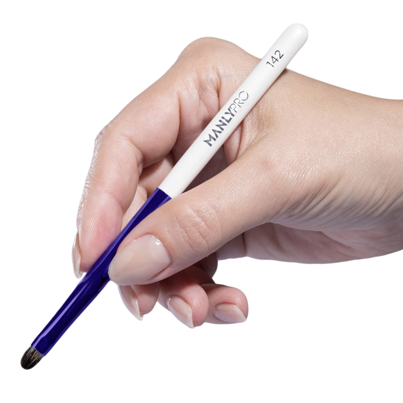 Маленькая плоская кисть для растушевки теней по ресничному краю и детальной проработки акцентов из натурального ворса белки.