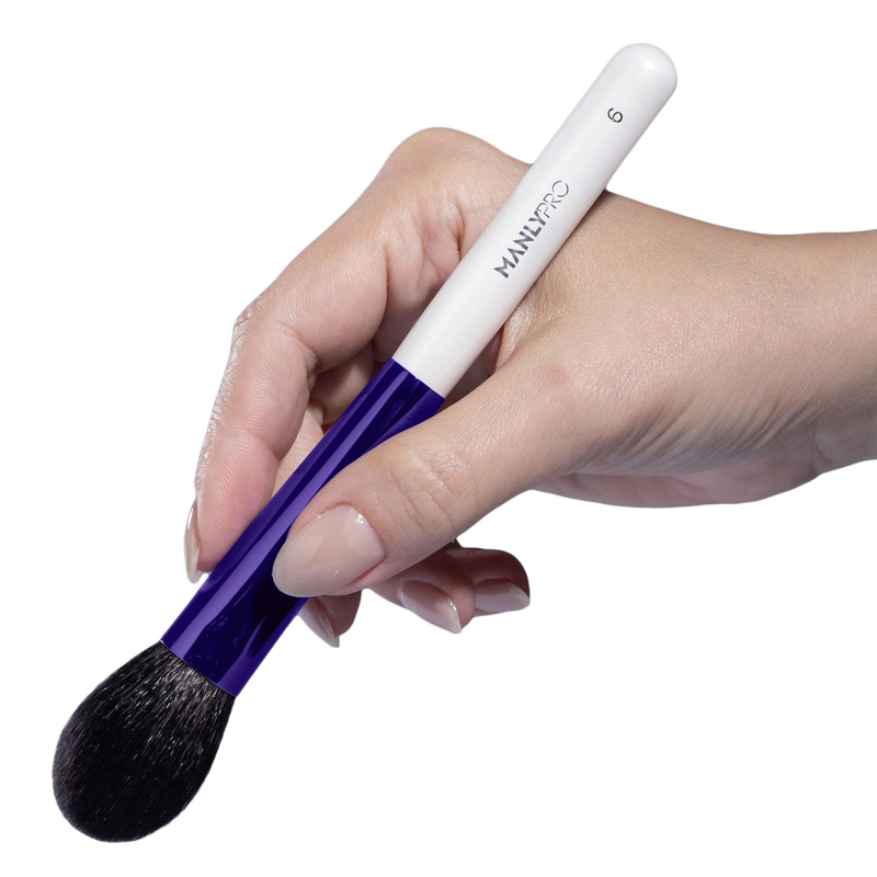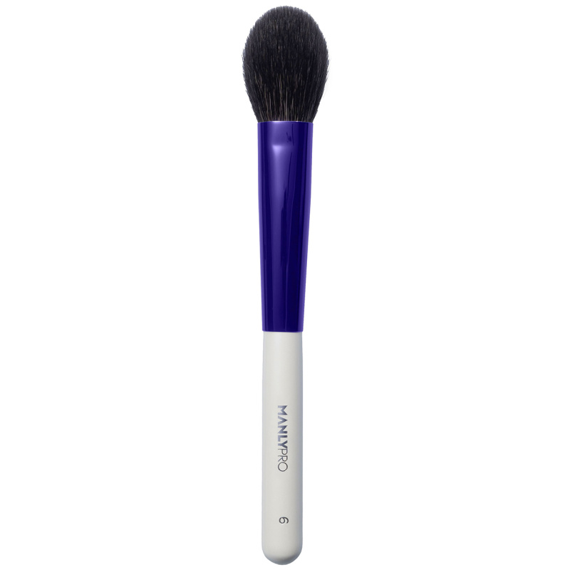 Плоская пушистая кисть среднего размера из натурального ворса козы "Премиум". Для нанесения румян, хайлайтеров и сухих корректоров для моделирования лица, для компактных и рассыпчатых пудр.