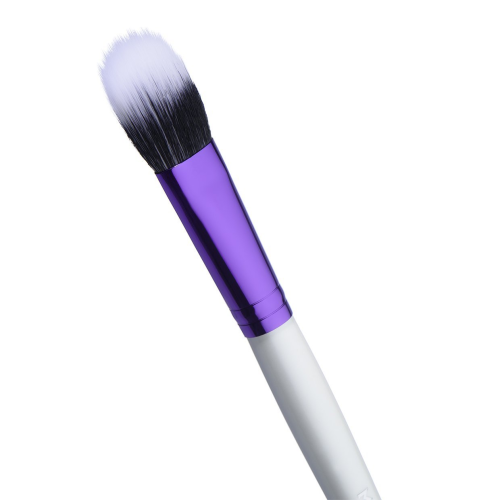 Кисть состоит из ворса разной длины, более короткий черный ворс создает плотность и упругость формы, а более длинный белый ворс обеспечивает качественную растушевку. Также кисть имеет две рабочие плоскости, и поэтому ей удобно работать сразу с несколькими текстурами и оттенками - это ускоряет работу и позволяет добиваться разнообразных эффектов в макияже, используя всего одну кисть.