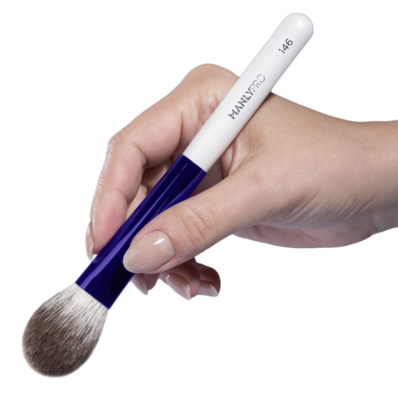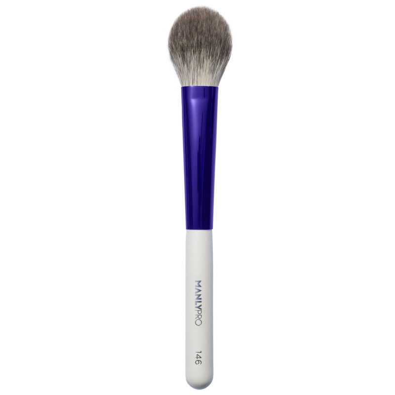Кисть средняя плоская для пудры, румян и хайлайтеров из ворса полярной лисы.