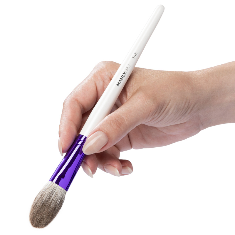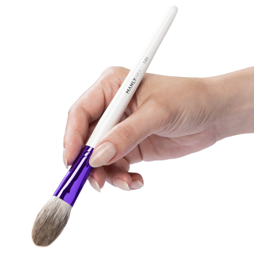Кисть средняя плоская для пудры, румян и хайлайтеров из ворса полярной лисы.