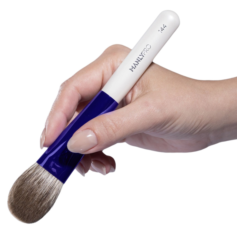 Кисть средняя плоская для румян, бронзеров и пудры из ворса полярной лисы.