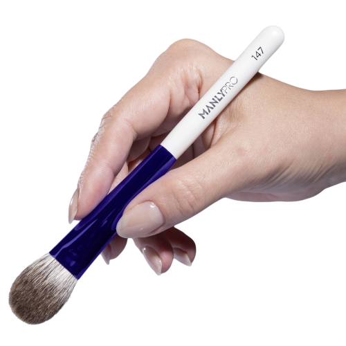 Кисть средняя плоская для пудры, румян и хайлайтеров из ворса полярной лисы.