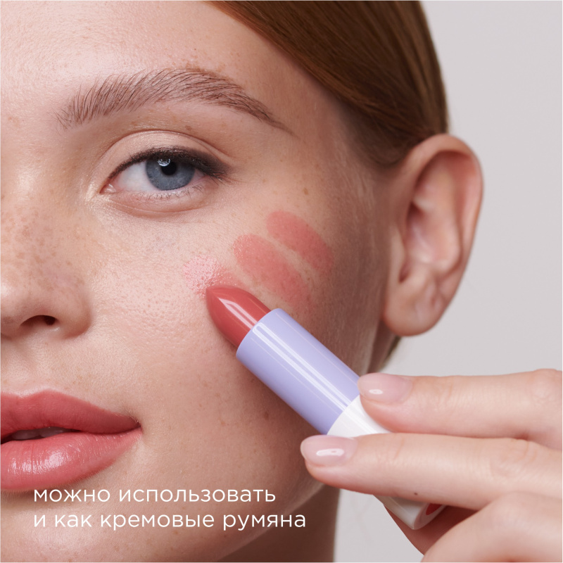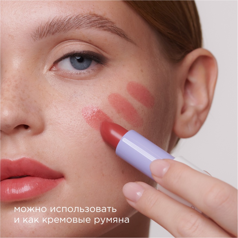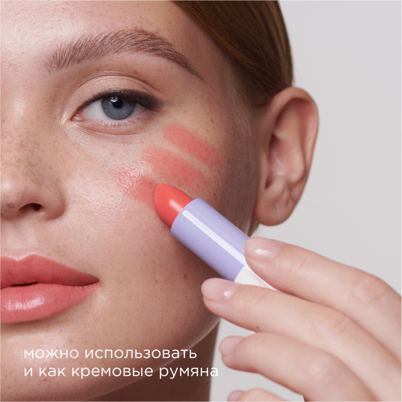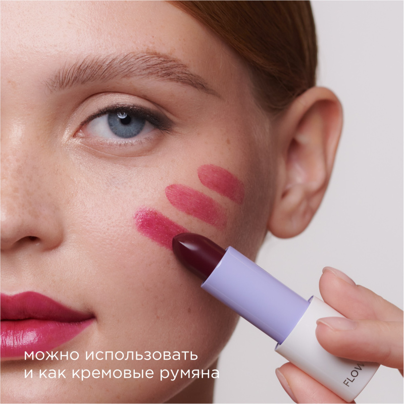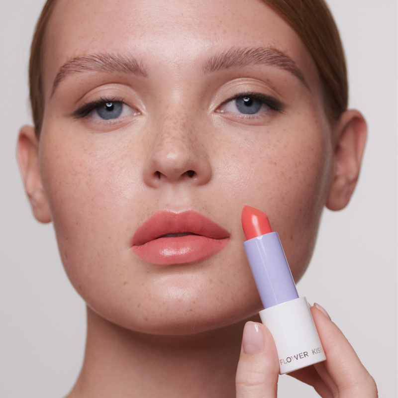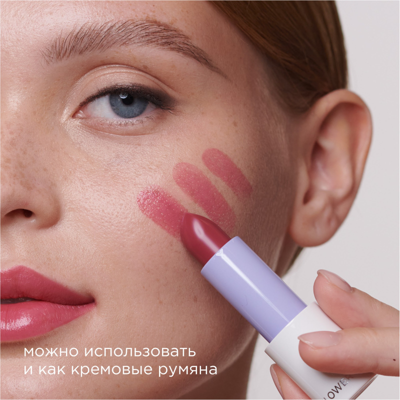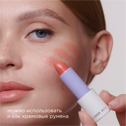Помада-бальзам Flower Kiss может использоваться не только для губ, но и как румяна с эффектом влажного блеска. Для этого нанесите помаду на яблочки щек кистью, спонжем или пальцами. Для большей стойкости макияжа закрепите результат с помощью прозрачной пудры.
