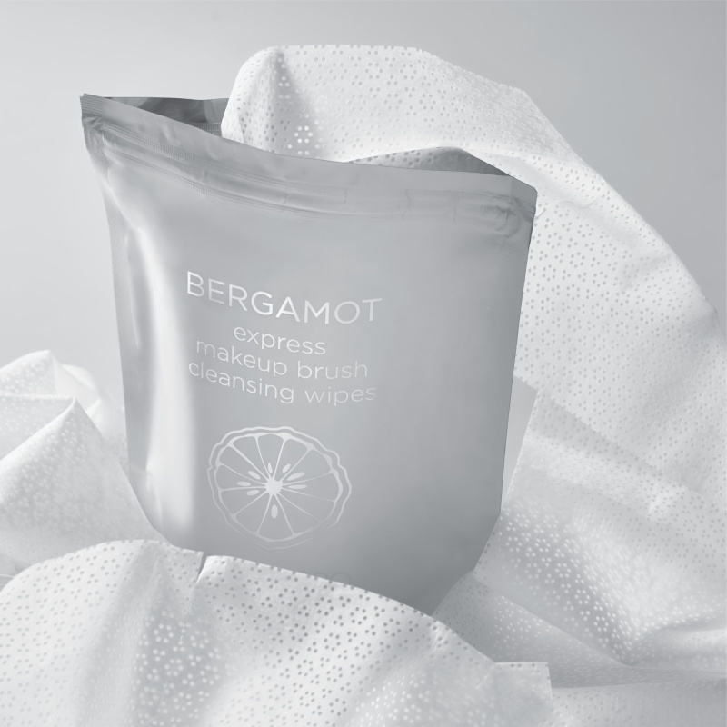 Экспресс-очищающие салфетки с маслом бергамота и антибактериальным эффектом для макияжных кистей.