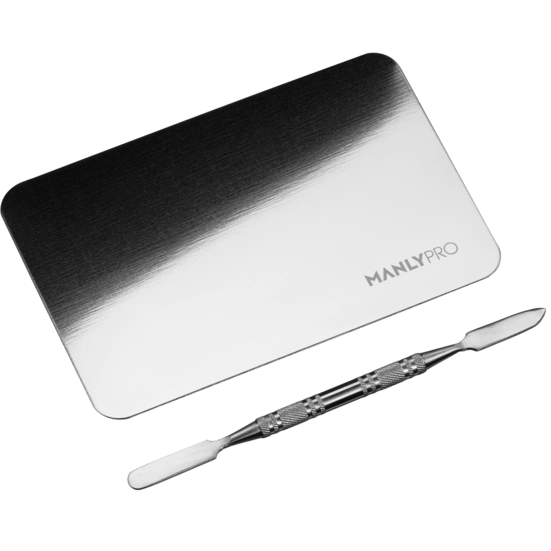 Стальная палитра для смешивания косметики в комплекте со шпателем.